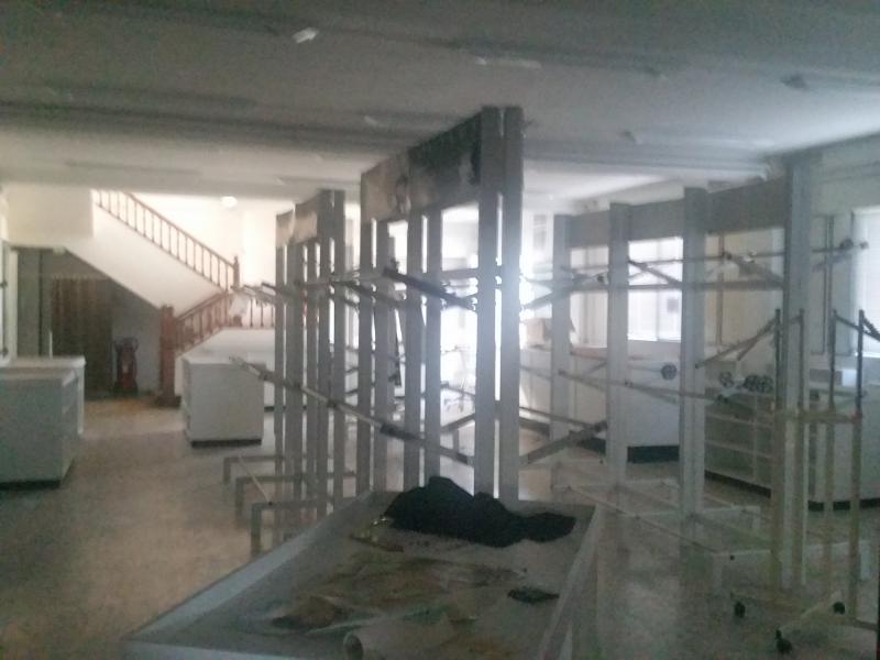 Zona de venta al público revestida en madera, y yeso pintado el resto.