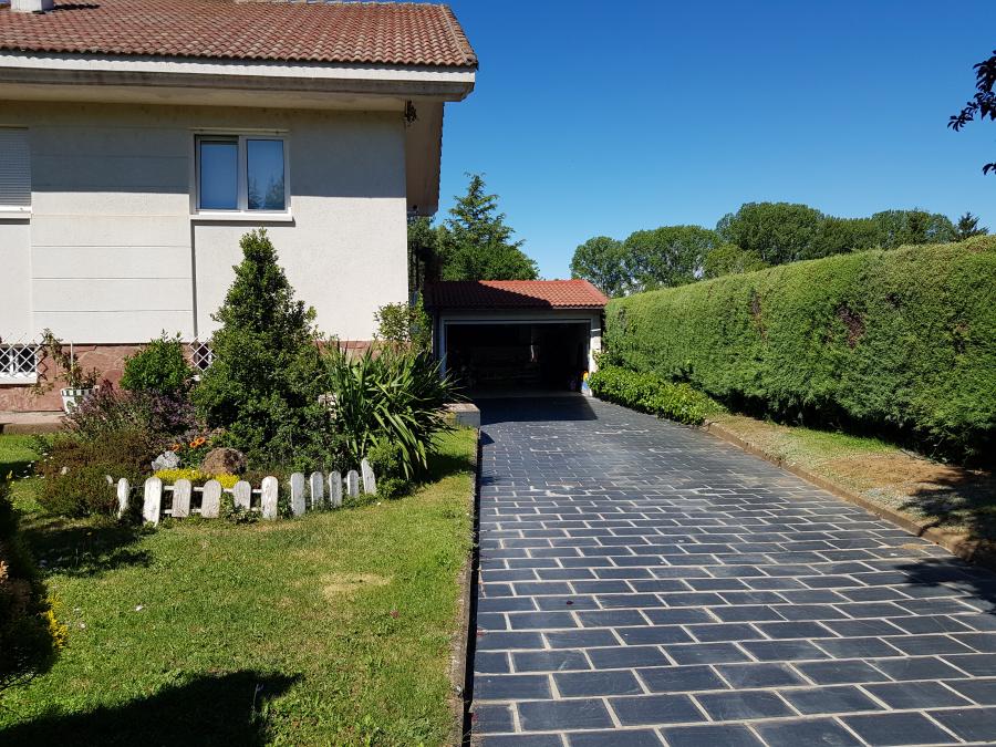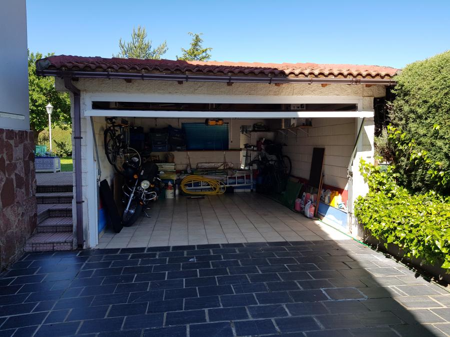 Tiene zona amplia de parking cubierto con capacidad para tres coches.