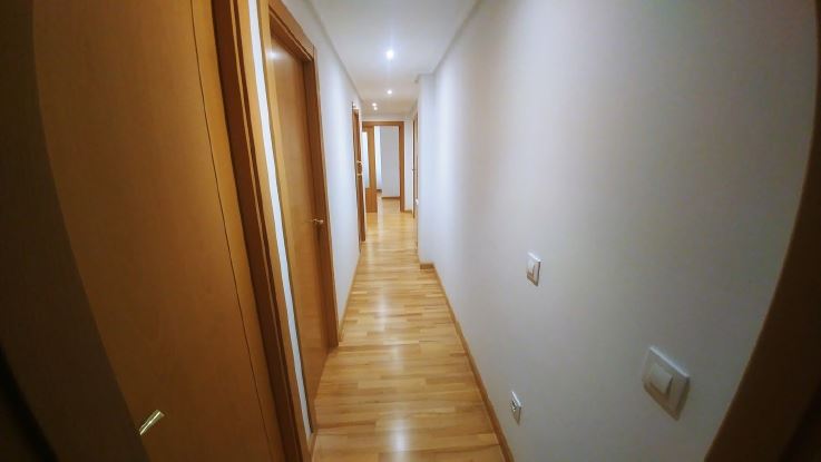 Puertas de madera y suelos de parquet flotante.