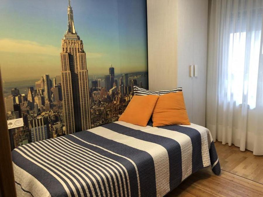 Con 2 terrazas. En este piso hay 3 armarios empotrados y uno algo más pequeño. Las puertas son de madera, las ventanas y persianas de aluminio y el suelo de parquet y de gres.