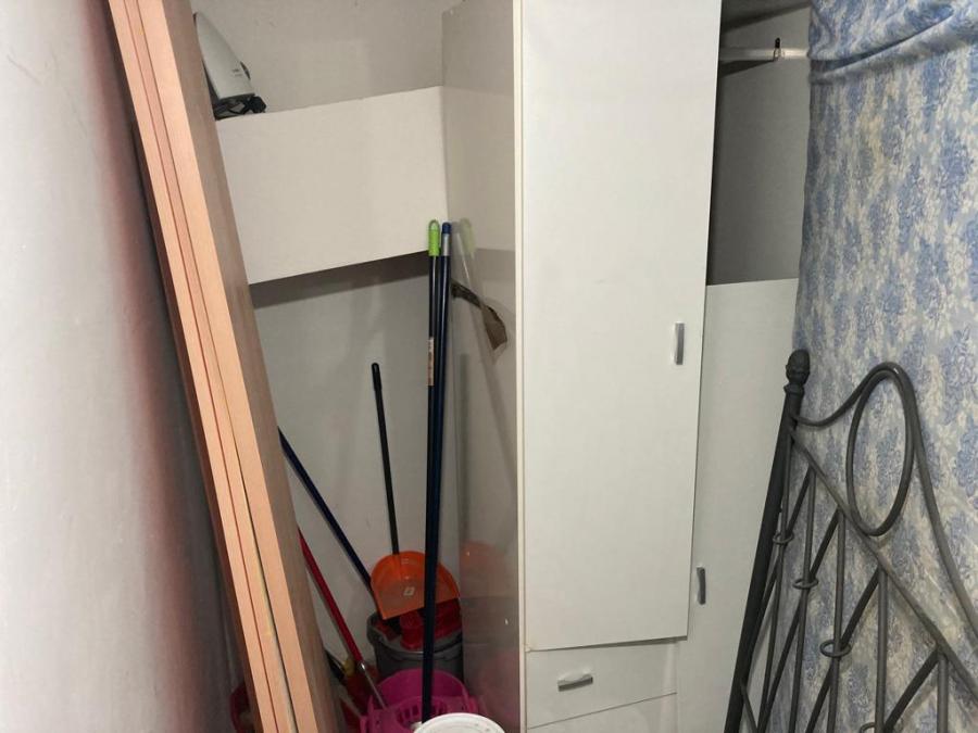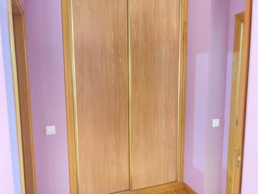 Con un armario empotrado, puertas de sapeli, ventanas de aluminio y suelos de parquet flotante.