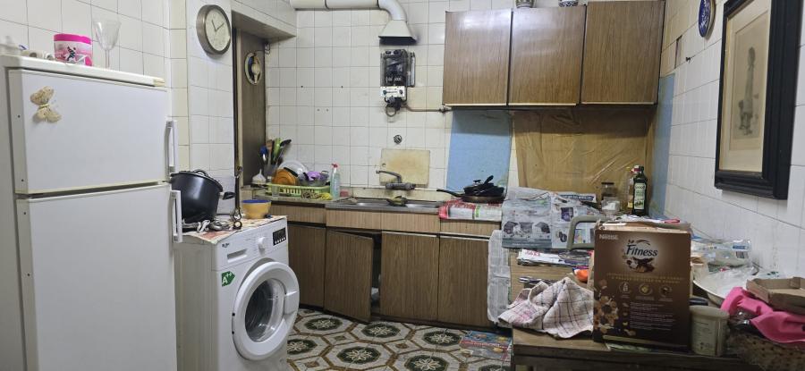Tiene 5 habitaciones, una zona de hall / distribuidor en mitad del piso que hace las veces de salón, cocina amueblada con electrodomésticos, con una despensa, un baño con bañera y otro con plato de ducha.